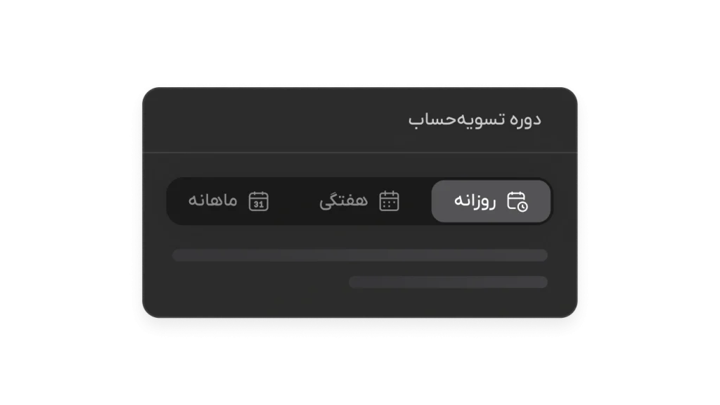بیوتیپی برای مراکز زیبایی فعال، روشهای تسویه حساب قبل از سررسید را پیشنهاد میکند. با این قابلیت شما میتوانید زمان تسویه حساب را بصورت فوری (روزانه)، هفتگی و ماهیانه انتخاب کنید.